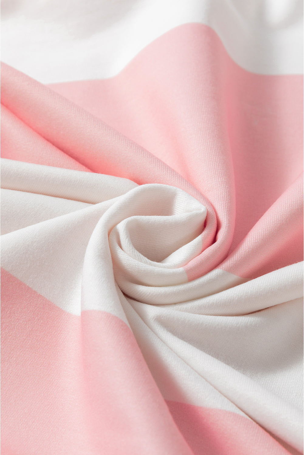 Light Pink Colorblock Striped Drop Shoulder Long Sleeve Top